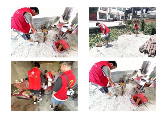 7月20日,團隊帶著米、面、牛奶走訪村內貧困戶。在獨居老人張奶奶家,隊員們一邊聽她講年輕時種牡丹的故事,一邊幫著擦拭門窗、整理雜物。“你們來了,屋里亮堂多了。”張奶奶的話,讓隊員們懂得,鄉村實踐既要“做實事”,更要“暖人心”。