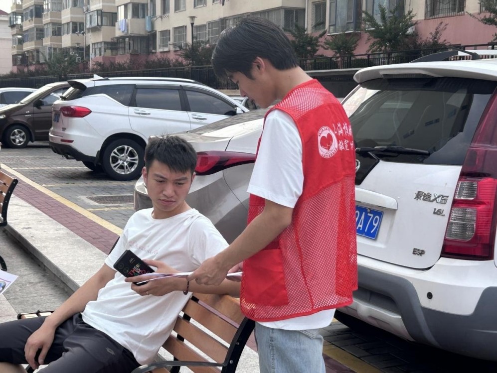 在居民樓附近,青壯年居民來來往往,有的剛下班回家,有的正要出門辦事。宣傳團(tuán)成員主動上前,向他們發(fā)放宣傳單,并簡要介紹。不少青壯年接過宣傳單后,當(dāng)場就認(rèn)真閱讀起來,還有人就其中的內(nèi)容與成員們進(jìn)行交流探討,成員們都一一耐心回應(yīng)。