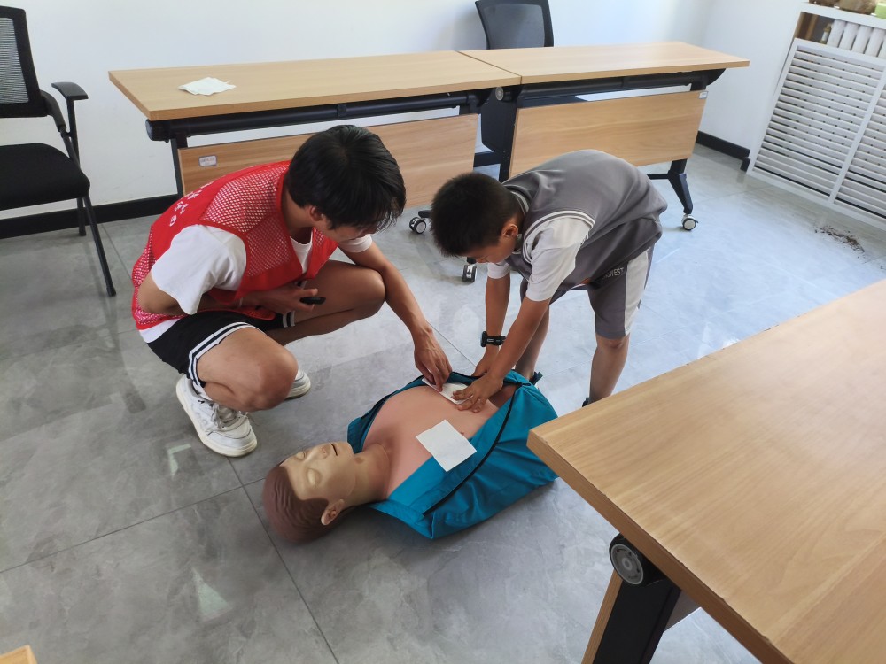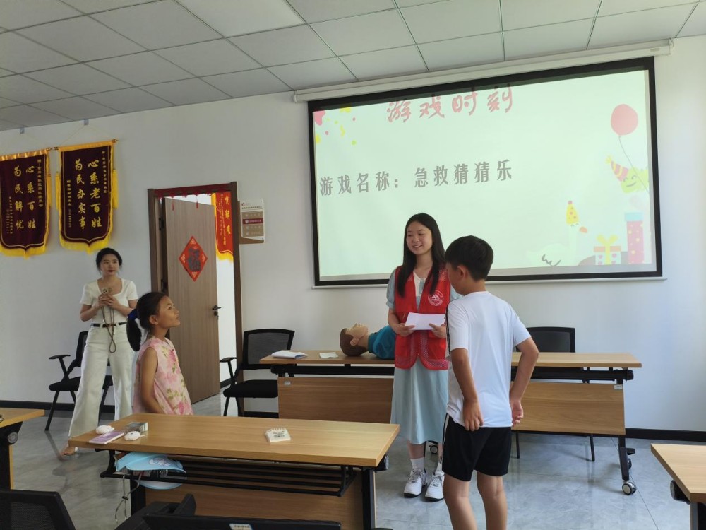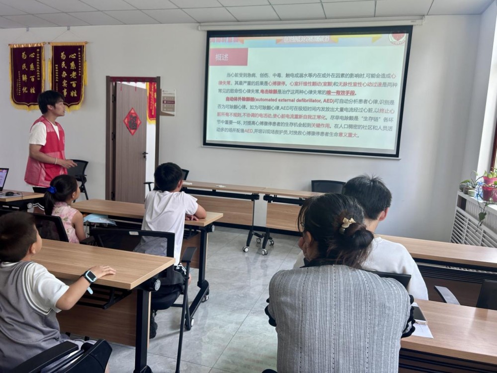 夏日炎炎,卻擋不住社區居民學習急救知識的熱情;顒赢斕,金海灘社區的活動室內人頭攢動,不少家長帶著孩子早早來到現場,期待著這場實用又有趣的急救宣講。山東大學(威海)山海“博時急救”宣傳團的成員們也提前做好了充分準備,從道具擺放、設備調試到流程梳理,每一個細節都力求完美,只為給社區居民帶來一場高質量的急救知識盛宴。