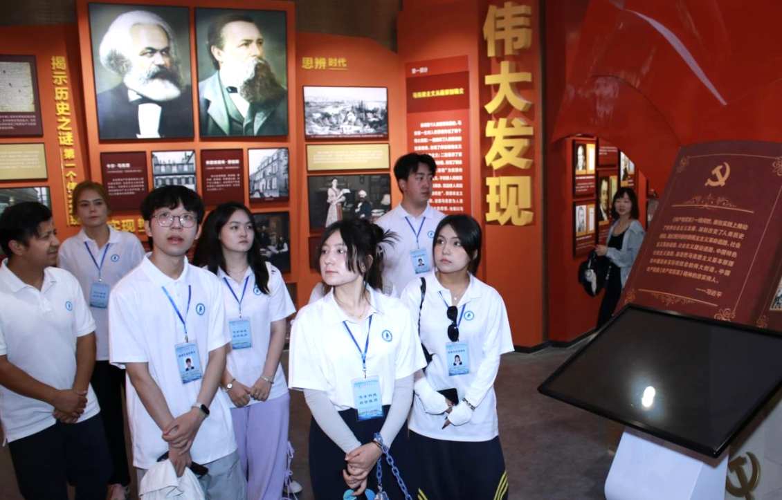 在喀什大學師生陪同下,實踐團一行先后參觀了思想政治教育實踐基地與自然博物館,深入了解喀什大學立足南疆、服務國家戰略的辦學定位與育人特色。喀什大學充分發揮區域優勢,依托“文化潤疆”實踐平臺和紅色文化資源,構建起多維度、全過程、沉浸式的“大思政”實踐育人體系,引導學生在基層調研、政策宣講、志愿服務中培育家國情懷,厚植中華民族共同體意識。基地講解員重點介紹了“民族團結一家親”、“訪惠聚”、“三進宣講”等一批有溫度、有實效的項目,讓實踐團成員深受感染。大家紛紛表示,將把所見所學轉化為成長動力,將民族團結的理念根植心中,落實于行。