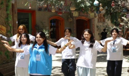 本地同學圍過來看,眼里閃著好奇的光,我便拉著她們的手教起來。從最簡單的“移頸”到腳步的“點踏”,看著她們漸漸舒展的身姿,我忽然懂了:文化從不是鎖在博物館里的符號,是能在掌心傳遞的溫度。就像古城墻縫里鉆出的花,不同的根須纏在一起,反而開得更旺。而我跳的每一步,都是想讓這份旺,再蔓延得遠一點。