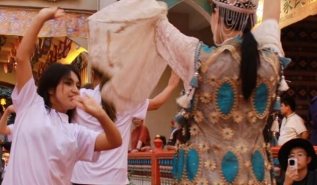 每當熟悉的旋律在耳畔漾開,我的腳尖總會先于思緒踮起,手腕不自覺地跟著節奏翻轉——這大概是刻在維吾爾族血脈里的本能。在喀什古城的街巷里,遠遠聽見舞蹈演員的鼓點響起,我笑著加入她們,不用刻意編排,腳步的輕重、眼神的流轉自會與她們呼應,那一刻,仿佛千年的樂舞基因在我們身上同頻跳動,陌生感在舞步里悄悄融成了親近。