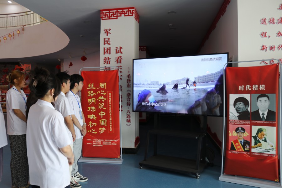 活動中,學子們重點學習了“帕米爾雄鷹”拉齊尼·巴依卡的英雄事跡。通過專題展區的圖片、視頻及實物展示,大家了解到拉齊尼一家三代接力守護邊疆的故事:他常年往返于冰封雪凍的紅其拉甫巡邏線,為邊防戰士當向導、為牧民解危難,2021年因救落水兒童不幸犧牲,用生命踐行了“守護國土”的誓言。“這輩子要一直做一名不穿軍裝的邊防戰士”的鏗鏘話語,讓現場學子深受觸動。