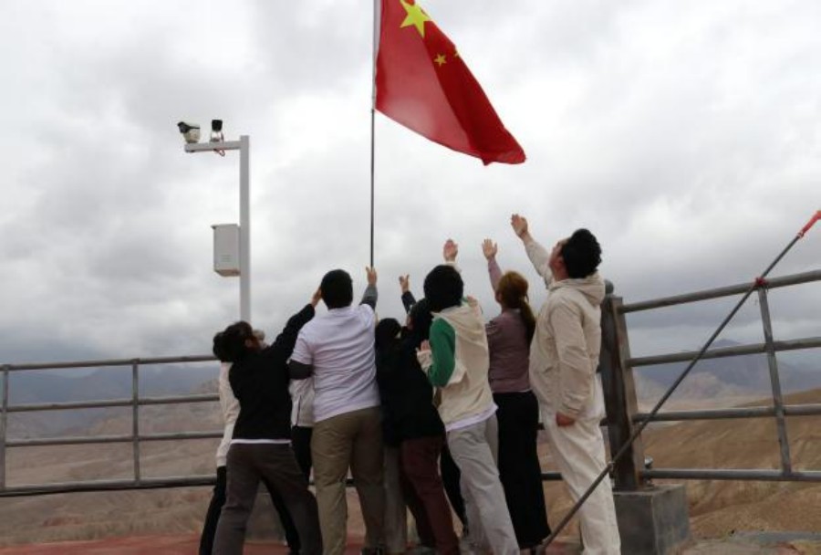 實(shí)踐團(tuán)成員們來到海拔約3300米,高19.99米,刻有中國(guó)西極地標(biāo)塔前,這是一幅雄渾而壯闊的畫卷,卻也充斥著讓人難以想象的艱苦。中國(guó)西極以自己獨(dú)特的姿態(tài),在祖國(guó)的西部版圖上書寫著屬于自己的篇章,這里不僅是地理意義上的“西極”,更是民族團(tuán)結(jié)、邊疆穩(wěn)定、生態(tài)優(yōu)美、發(fā)展進(jìn)步的生動(dòng)縮影。當(dāng)余暉穿透昆侖山脈的積血,灑在這片承載著“中國(guó)最后一縷陽(yáng)光”記憶的土地上時(shí),隊(duì)員們肅立在祖國(guó)最西陲,“我愛你中國(guó)”的吶喊聲響徹蒼穹,包含著對(duì)祖國(guó)最真摯、最深沉的熱愛。