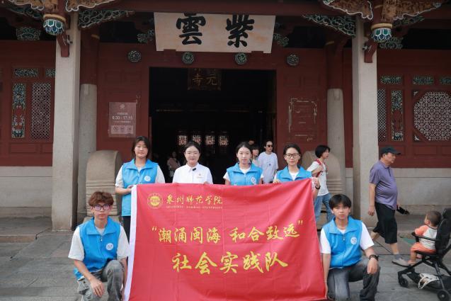 聚焦泉州石刻蘊藏的開放包容的海洋文化基因,實踐隊成員們先后探訪了開元寺、東西塔等歷史遺跡。指尖輕觸紫云屏上斑駁的刻痕,那些深淺不一的紋路里,仿佛還留存著宋元工匠鑿刻時的溫度。目光凝注“僧到赤烏”的古老字跡,,寥寥幾個字卻訴說著佛教東傳與本土文化相遇的千年往事。隊員們在這些歷經千年風雨的石刻間深切地領悟其中蘊含的“和而不同”的文明智慧。