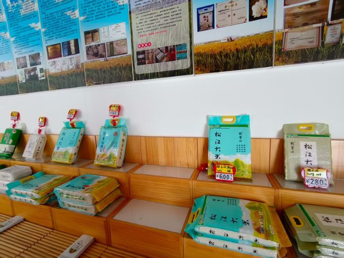 調研的最后一站,小隊來到了松江大米展示館。這里系統陳列了松江大米的多個優質品種,如早熟優質的“松早香1號”、米香濃郁的“松香粳1018”等。通過詳實的圖文資料、產品實物展示以及各銷售點介紹,隊員們得以全面、系統地了解“松江大米”品牌建設的歷程、現狀與未來規劃。展示館猶如一個窗口,將松江大米從優良品種選育、生態種植理念到品牌營銷推廣的全貌呈現出來。