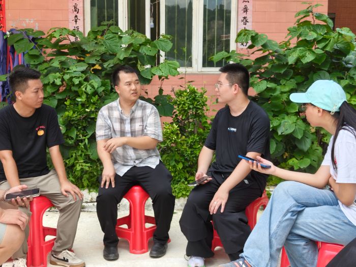 基地考察后,團隊轉赴小關村與村書記展開座談。村書記展開一幅“產業地圖”:“全村800多戶中超500戶種植山銀花,大部分生花由本地十多家加工廠收購,成品主銷成都、長沙藥材市場。”面對價格波動,村里通過合作社引導農戶精細化采摘,并全力打造“朵花”自有品牌以提升附加值。他還提及采摘季勞動力緊張時需外調人手,以及結合避暑季探索“金銀花+民宿”文旅路徑的初步設想,讓游客帶走的不只是產品,更是山野記憶。訪談尾聲,書記拍拍團隊成員的肩膀,笑著說道:“我們非常歡迎也非常感謝大學生們來‘三下鄉’調研,運用你們的所學知識調查產業發展實際情況、提出切實可行建議,并且為山銀花產業發展做宣傳。”