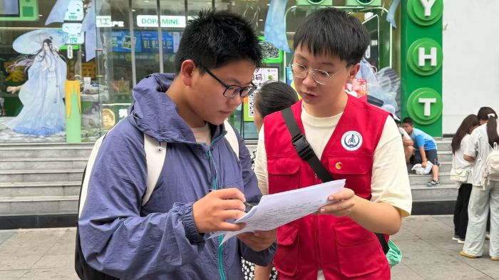 圖為實踐隊員當街發放調查問卷 通訊員杜宣緯 供圖