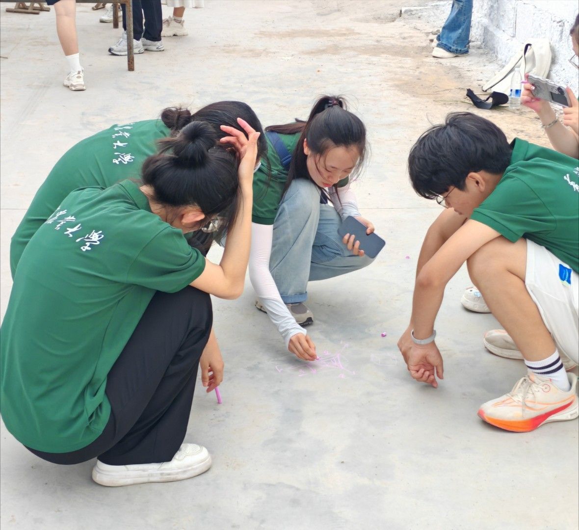圖為隊員們用彩色粉筆進行墻繪起稿。王齊瑋 供圖