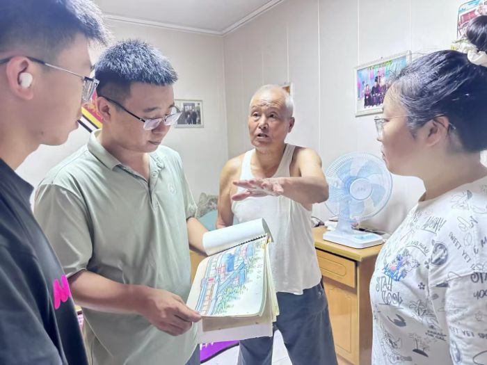 圖為黨員王合平先生向隊員們提出墻繪修改意見。魏佳 供圖