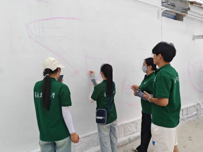 圖為隊員們用粉筆進行墻繪起稿。魏佳 供圖