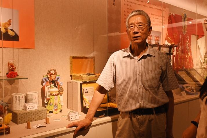 圖:滑樹林老師介紹博物館內(nèi)的絹人歷史與制作技藝