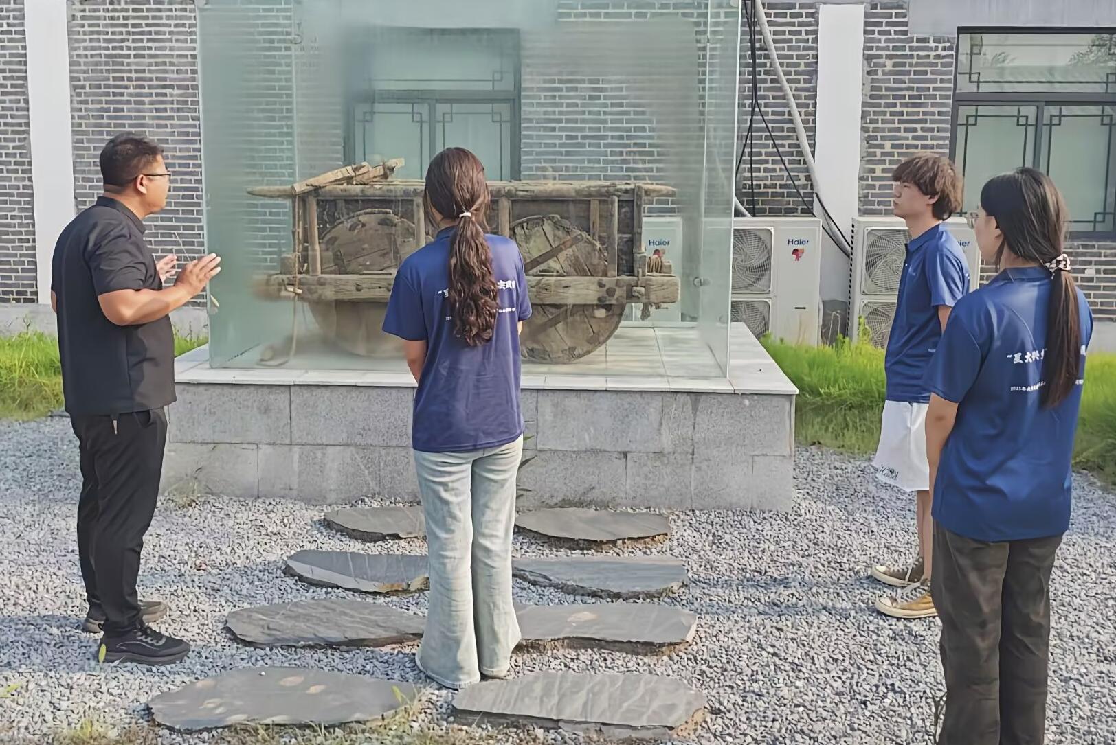 在 “議堂之窗” 紅色議事堂內,團隊成員們駐足凝視著陳列的老物件,其中一輛手推車承載著歲月痕跡。團隊成員張研研感慨道,這些見證歷史的老物件與眼前鄉村的嶄新風貌相互呼應,深刻詮釋著鄉村在傳承歷史中不斷發展的進程。