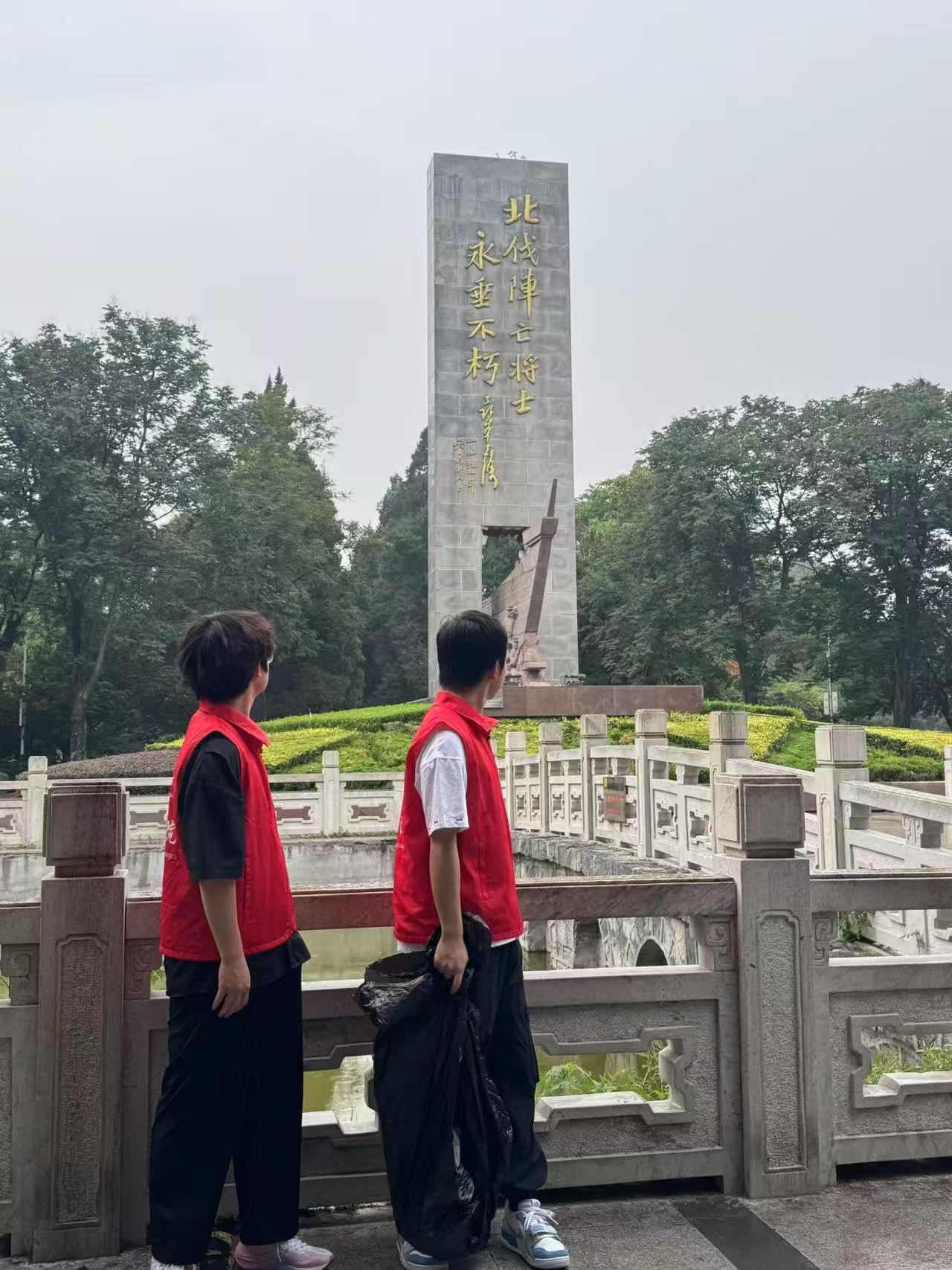 活動(dòng)現(xiàn)場(chǎng),團(tuán)隊(duì)成員身著紅色志愿服,認(rèn)真清理紀(jì)念區(qū)域環(huán)境,以實(shí)際行動(dòng)守護(hù)先烈紀(jì)念地的莊嚴(yán)與整潔 。在 “北伐陣亡將士永垂不朽” 紀(jì)念碑前,成員們駐足瞻仰,深切緬懷革命先烈的英勇事跡,感悟先輩們?yōu)槔硐胄拍願(yuàn)^斗犧牲的偉大精神。