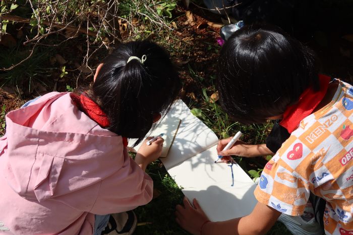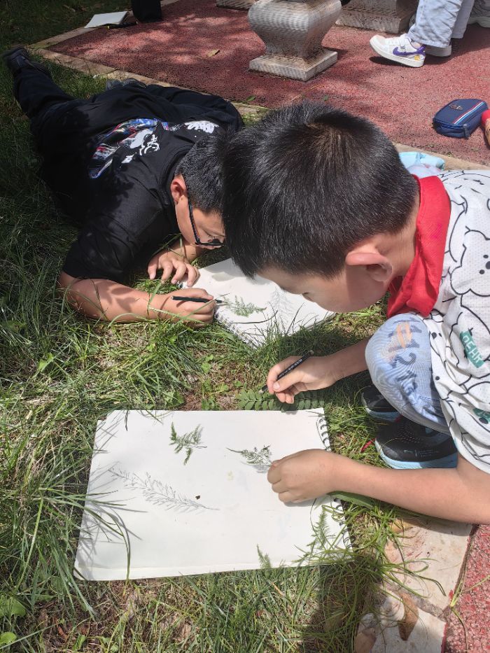 除此之外,課堂并未停留在講述之中,倪立涵老師帶著孩子們走出教室,在校園里捕捉屬于自己的那一抹影子,并用畫筆將它定格。陽光透過樹葉灑下斑駁光斑,腳步與剪影在地面上悄然延伸,那一刻,他們與光影的距離,不再是旁觀,而是參與與創造。對影子的接納與對話,本質上是一場關于勇氣的生命儀式,每一個人,都是自己生命中的追光者。