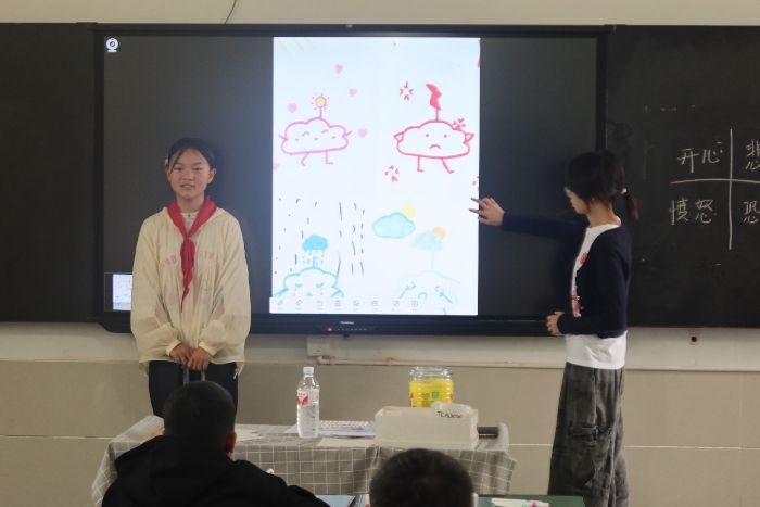 課堂伊始,志愿者老師娓娓講解海龜湯的定義與玩法,為接下來的互動奠定好規則。接著,兩個精心設計的“湯面”隨之亮相,孩子們舉手發問,在字里行間探尋隱秘線索,逐步揭開情緒背后的“湯底”。這兩個看似尋常的故事,卻暗藏微妙的情緒轉折。