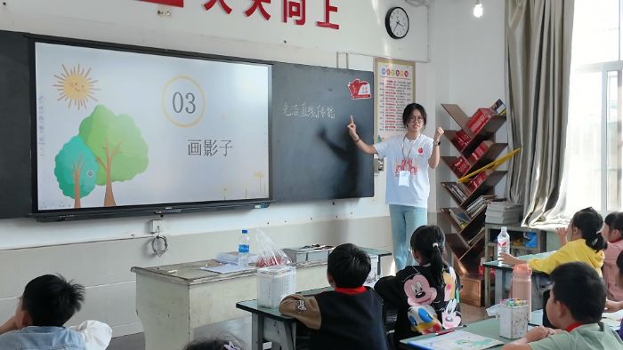 在“生命的影子”主題課堂上,倪立涵老師以生活中最常見的“影子”作為開端,讓孩子們的目光聚焦在這一平凡卻耐人尋味的存在上。隨后播放的短片,讓他們在流動的畫面中直觀感受光影的生成,科學邏輯與視覺的沖擊在此交織,煥發出別樣的色彩。
