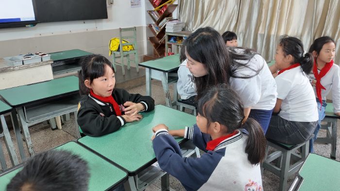 圖8為團隊成員周雨晨細心為孩子們答疑解惑 林山豪攝