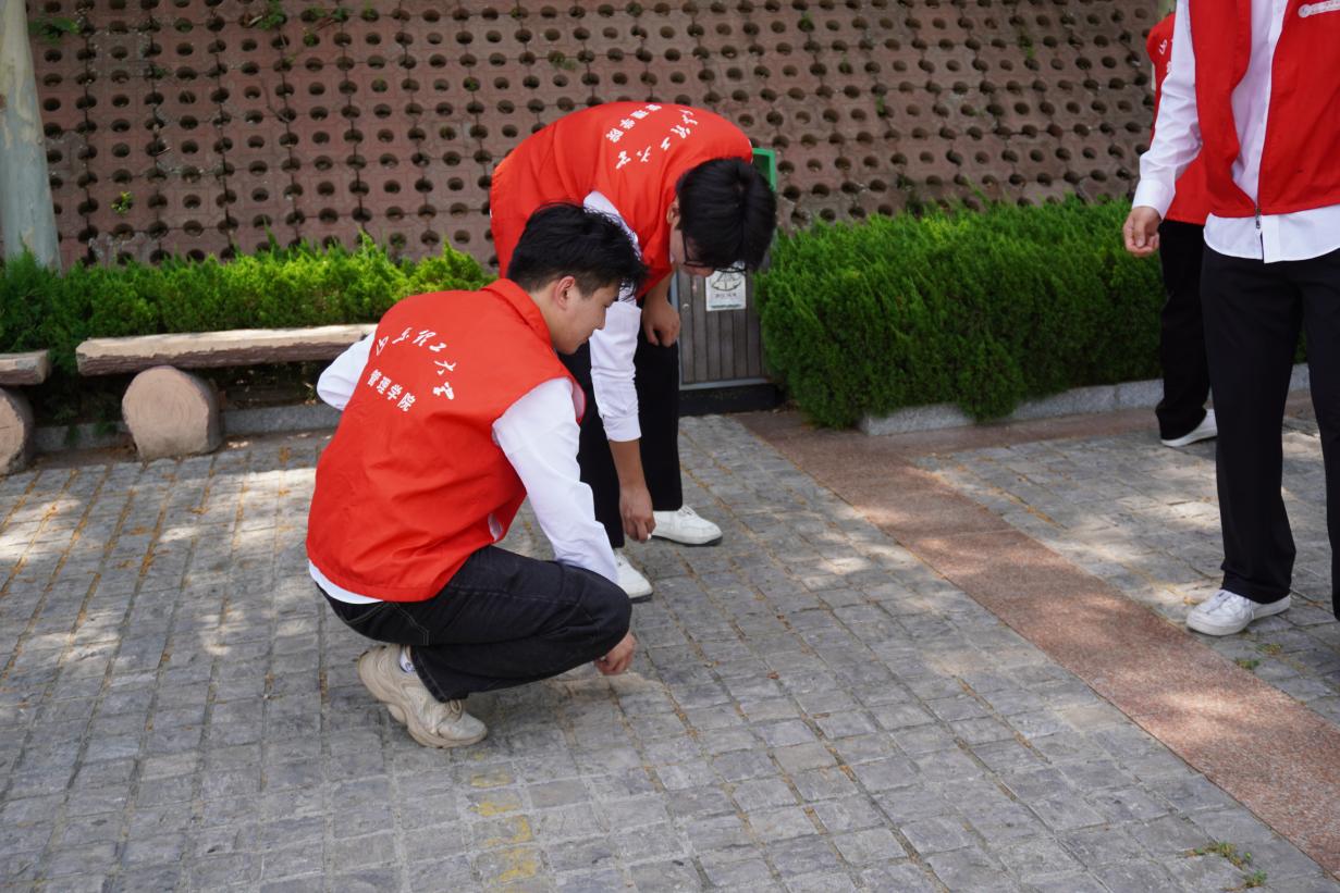 紀念館外,實踐團開展志愿服務:撿拾垃圾、維護環境、協助整理資料。成員們以焦裕祿“心里裝著群眾”為標尺,用點滴行動傳遞溫暖。