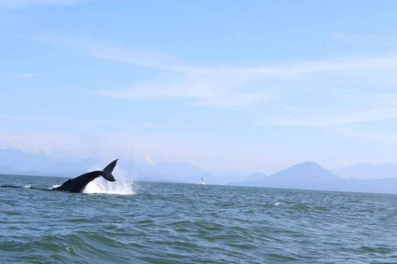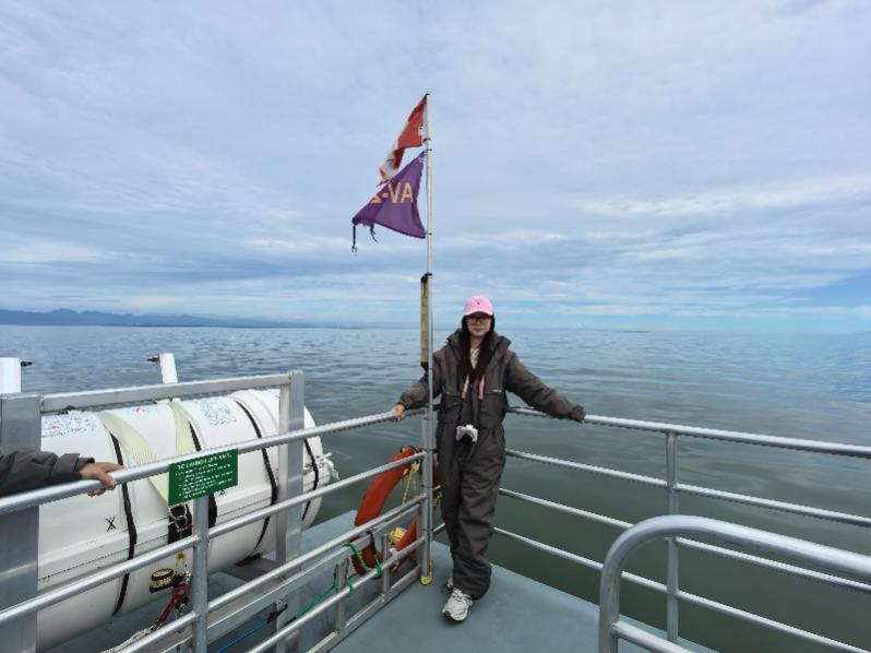 帶著對“大藍”的回憶和對海洋生靈的向往,王雅潤隨后來到了溫哥華近海海域,迫不及待地想要親眼見證那些曾在標本中認識的生物,在真正的大洋里是如何地生機勃發。經過近一個小時的海上漂浮,船上的講解員突然手指前方,原來是不遠處一只虎鯨正在換氣。它的身影優美而強大,巨大的尾鰭高高揚起,仿佛在向天空致意,隨后又沒入水中,只在海面上留下一圈逐漸擴散的漣漪。