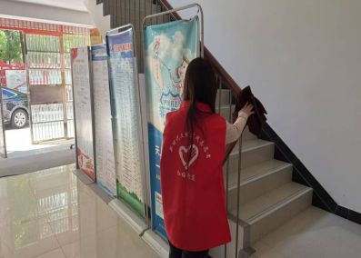 8月15日,隊員蔡思奕與周澤坤在常州市金梅花園社區,將節水行動融入社區服務的細微之處。他們仔細檢查并修復了社區黨群服務中心的滴水龍頭,在沖水箱內放置節水瓶,并在清潔工作中主動使用桶裝水替代流水沖洗抹布,以每一個微小的行動踐行節水承諾。他們將宣傳海報擺放于醒目位置,引導居民增強環保意識。他們讓節水不再是抽象的口號,而是成為了社區日常生活中的一部分。