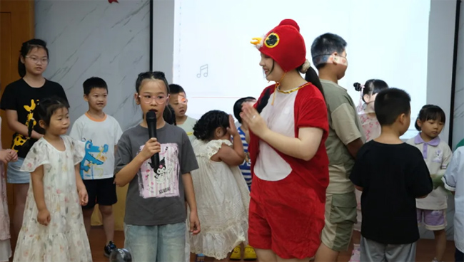 演出過程中,孩子們的反應是最即時的反饋。他們不再像在日常課堂上那樣偶爾分心,而是全程被劇情牢牢吸引。當鳳凰陷入困境時,臺下鴉雀無聲,小臉上寫滿了擔憂與關切;當百鳥齊心協力想出辦法時,孩子們情不自禁地為之鼓掌歡呼;當互動環節開始時,他們爭先恐后地舉手參與,全身心投入“救援”任務。這種高度的專注力和強烈的情感投入,遠超被動接受知識的狀態,說明劇目真正觸動了他們的內心世界。