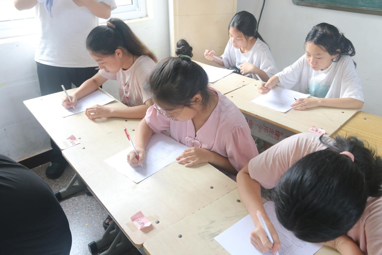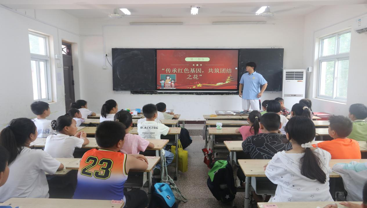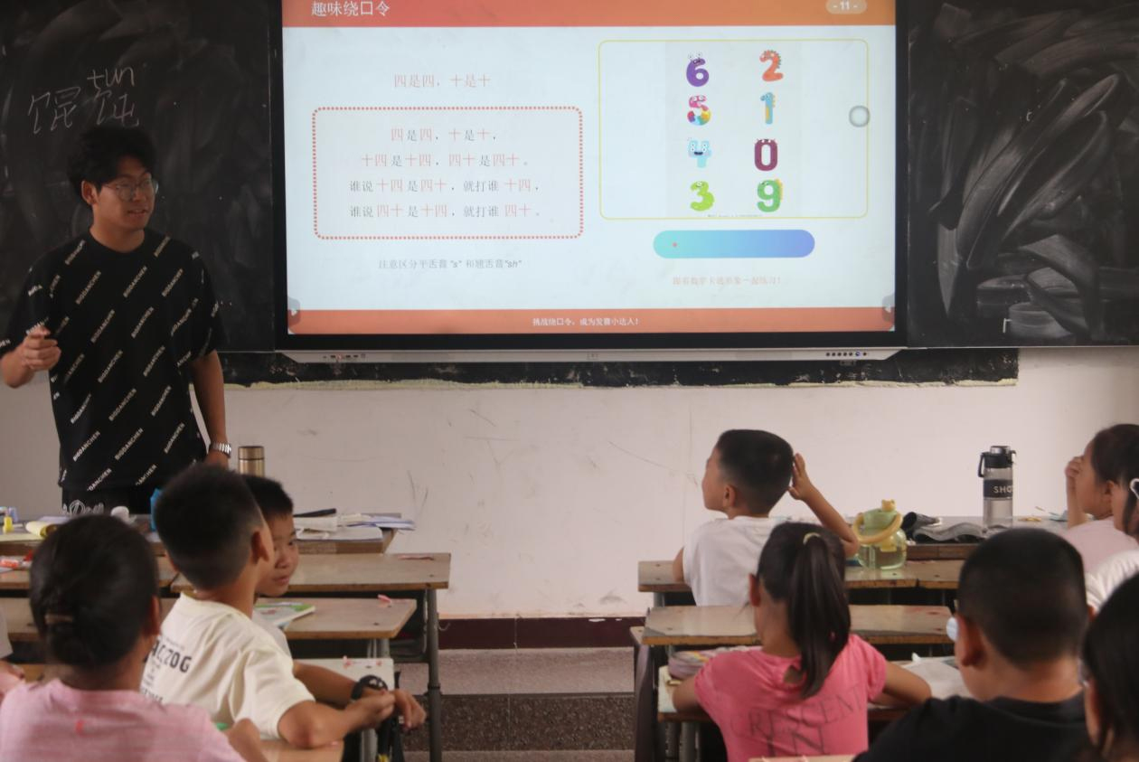 在石門鄉竹園小學暑期推普課堂上,推普團隊成員通過方言與普通話發音對比游戲,讓孩子們在競技中掌握正確讀音,以生活場景情景短劇,幫助孩子們在角色扮演中自然地用普通話對話。在課后利用“一對一”的模式結對鞏固,還布置給家人講普通話故事的作業,將推普效應延伸至家庭。