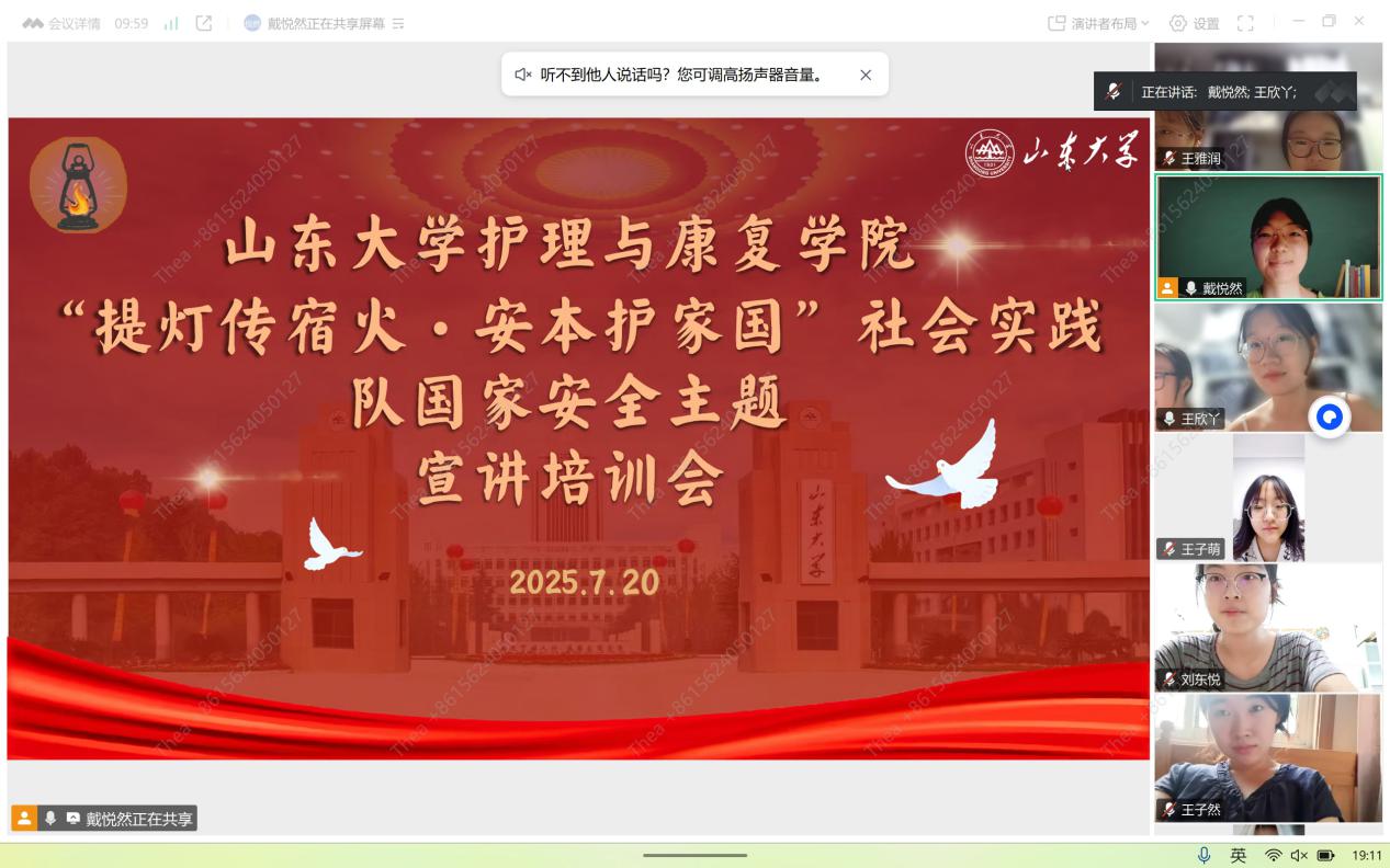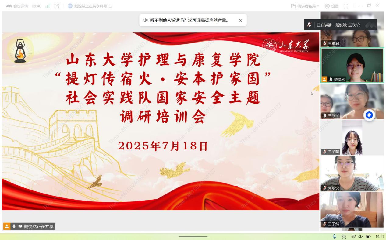 從黃河流域到天山南北,從東部沿海到大洋彼岸,這個暑假,山東大學護理與康復學院“提燈傳宿火・安本護家國”社會實踐隊以 “調研14地、宣講16場、覆蓋2國10省”的扎實行動,完成了一場“行走的國家安全教育”。隊員們不僅深化了對總體國家安全觀的認知,更通過基層實踐,將青春力量融入“共筑國安防線”的時代使命。