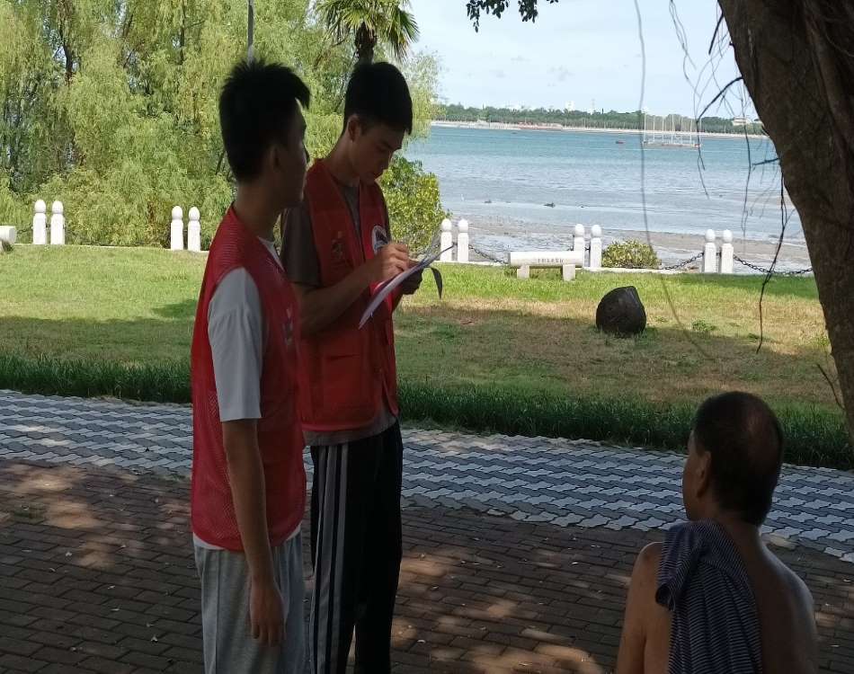 在活動的過程中,湛江的天氣非常高溫炎熱,但是我們沒有退縮,堅持把實踐任務做完。在公園里重復走了三次,不斷詢問過往路人居民,只為更好地收集信息。在面對難題,挑戰難題過程中,我們感受到了成長與實踐的意義。這樣的一天是充實而短暫的,坐上汽車,望著窗外緩緩下沉的夕陽,我們繼續著下一站的旅途。