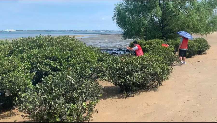 在與居民的交流引導下,我們離開漁港公園,繼續向前走去,我們找到了位于公園不遠處海岸邊的紅樹林植株群,并對其展開了觀察,記錄下當地紅樹林的生長狀況和附近的生態環境。隨后,我們對當地居民進行了詳細的采訪調研,并且記錄訪談內容。
