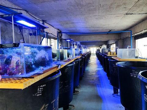 為探索海洋牧場(chǎng)的發(fā)展模式對(duì)海南省海洋生態(tài)保護(hù)的積極作用,調(diào)研團(tuán)來(lái)到了海南省萬(wàn)寧市山根鎮(zhèn)排溪村,在這里,有一所在陸地上的“海洋牧場(chǎng)”。顧名思義,陸基“海洋牧場(chǎng)”就是將海洋牧場(chǎng)的管理模式“搬”到了陸地上,在陸地上構(gòu)建一種模擬海洋的小型生態(tài)系統(tǒng),而這樣的生態(tài)系統(tǒng)可較方便、集中地進(jìn)行海洋生物的養(yǎng)殖繁育。山根鎮(zhèn)海洋牧場(chǎng)重點(diǎn)培育繁育的物種是海南本地的珊瑚蟲、硨磲與熱帶魚。這些物種的繁育與放流可以保護(hù)珍稀物種,修復(fù)海洋生態(tài),其生態(tài)價(jià)值不言而喻。