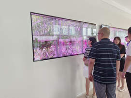 在工作人員的帶領下,實踐團成員和五位老師開始了一天的參觀學習。首先我們通過觀看視頻的方式了解農高區的發展史和最新成果。