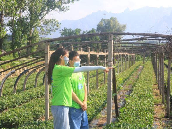產業振興是鄉村振興的基礎和關鍵,特色產業將帶動鄉村經濟的騰飛。在相關管理人員的帶領下,小海螺志愿服務隊的隊員參觀了解了云頭崮鄉村產業的發展狀況。實踐隊員采訪當地農民了解到以往的農田是莊稼的家園,農民們進行的是“面朝黃土背朝天”的工作,但是隨著鄉村振興的發展實施,各種產業在農村中百花齊放。農田中不再僅僅是莊稼,村民們還根據當地的地勢、氣候等條件種植果樹、茶葉等作物,同時,當地政府村委積極利用閑置土地進行建廠,發展多種產業,拓寬經濟收入渠道。實踐隊員在與農民交談中了解農作物的長勢情況,詢問作物的產量以及日常勞作生活,以及自然災害對作物的影響、措施等問題,充分利用自己所學的地理專業知識,與農民親切的交談,深入體會鄉村振興對于鄉村產業帶來的良好變化。