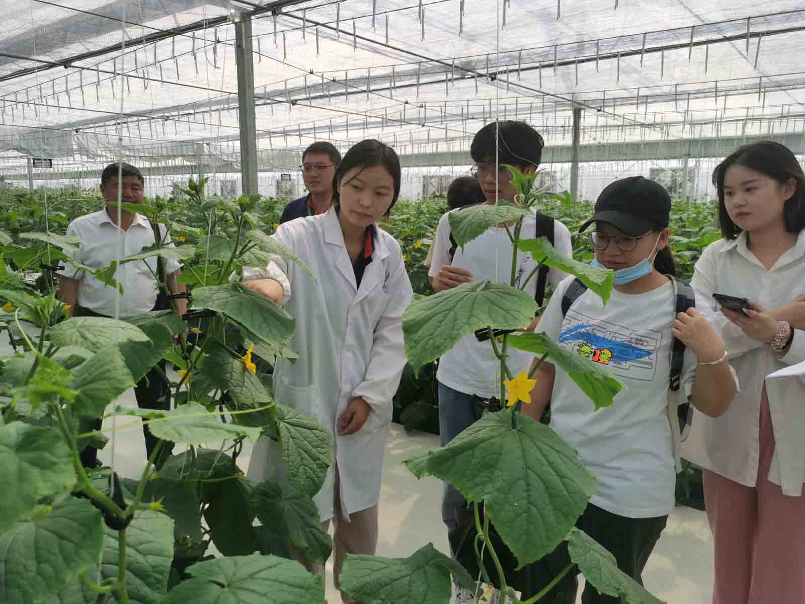 師生們前往的第一站是顧一鄉太空農場。據園區經理張奇介紹,顧一鄉太空農場是由一家上海公司全資投資,集高新農業技術應用與推廣、綠色生態蔬果生產、農業觀光旅游的霧耕農業生產園區。園區內有“金字塔”和“土堆”型的農業科技館作為展示,“鳥巢”型農作物種植大棚進行霧耕技術種植。初入大棚,成員們就被排列整齊的植株和品種各異的蔬果所吸引。據剛剛畢業到園區任職的技術人員楊雨欣介紹,大棚內的甜瓜畝產3900斤,而普通甜瓜畝產最高只達2000斤,不僅如此,靠著棚內恒定的溫度和先進的霧耕種植技術,棚內甜瓜一年可收三茬,而普通甜瓜一年只能收一茬。因此,公司高效的農業生產效率為自己的發展壯大打下堅實的基礎,對推動農業生產集約化、高效化、規模化提供了可借鑒經驗。