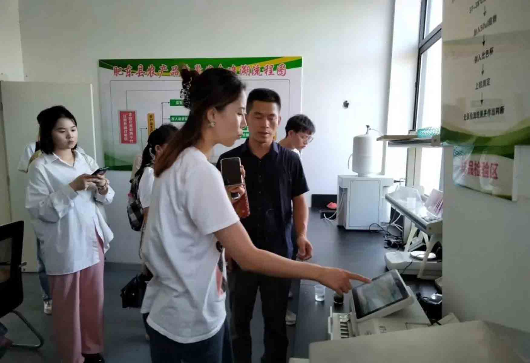 最后,師生們來到了園區的綠色蔬果質量檢測中心。據園區經理胡令科介紹,園區內每發出一批蔬果,都需要進行抽樣檢測,檢測合格后才能流通市場,若檢測不合格,該批次蔬果不僅不能流通市場,而且公司還將面臨數萬元罰款。園區內檢測設備由政府免費提供,監測數據也實時上傳至政府數據庫,這不僅為企業省去了大筆的設備購買和維護費用,而且保障了消費者購買的產品的質量。