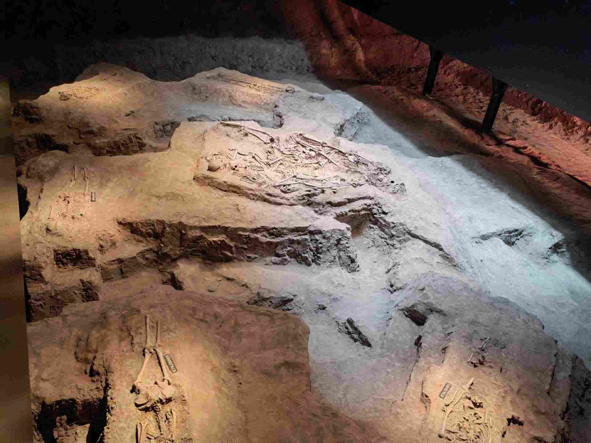 從新館出來,便是另外一個主題“萬人坑”遺址,這是整個紀念館的核心和高潮。外觀簡潔,像個黑盒子。里面還有南京大屠殺遇難者的白骨,在通過沙石地面、銹蝕鋼橋、昏暗的燈光等相結合的環境,更加直觀的感受曾經的遇難現場。在這里悲痛沉重的氣氛達到了高潮。