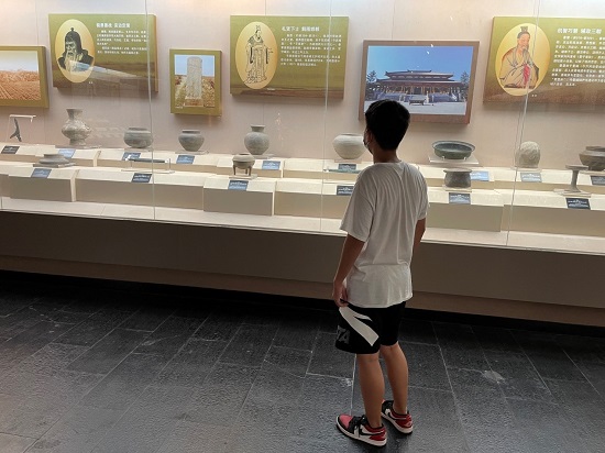 7月2日,實踐隊員來到德州黑陶城博物館,從大門進入后各式各樣的黑陶展品陳列在眼前,一件件圖案鮮艷黑陶器件讓實踐隊員目不轉睛。走進另一個展館,一縷煙絲彌漫在空氣當中,隊員們順著煙絲看到了一件黑陶器。實踐隊員觀察到該黑陶器件在造型上別具一格。這件黑陶作品由輪制成型,造型粗礦樸拙,無釉壓光,表面雖有光澤卻不浮艷,黑色陶體在不同光線角度下呈紫靛銀等不同光澤,晶瑩幻變,富有金屬感。隨后,實踐隊員跟隨著工作人員來到了黑陶文化館的主展廳。工作人員向實踐隊員介紹黑陶技藝與每件黑陶作品所蘊含的故事。在實地調研的過程中隊員發現,每一件黑陶藝術品都有自己獨特的亮點,有的高大且威嚴,有的很小卻精細,還有的充滿古樸的氣息。工作人員還講解到,德州的黑陶技藝在黑陶文化中占有著重要的地位,在中華文化中有著重大的藝術價值。此外,實踐隊員有幸參觀了黑陶印刻技藝的過程,黑陶博物館的工作人員在本就小巧的黑陶上,用小小的刻刀在上面刻出文字,每一次雕刻都是黑陶作品制作的精湛體現。
