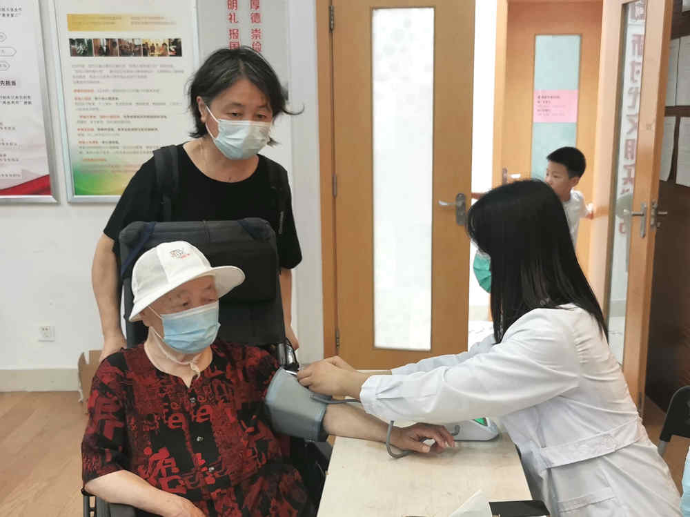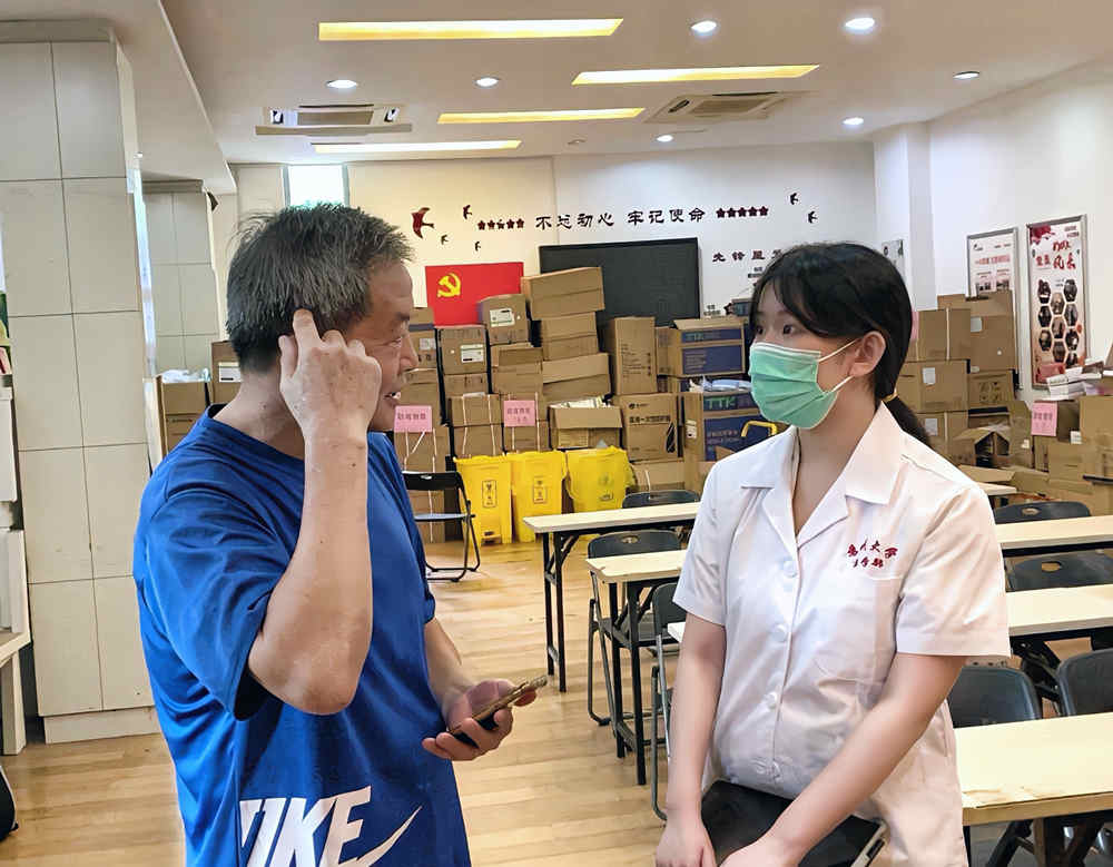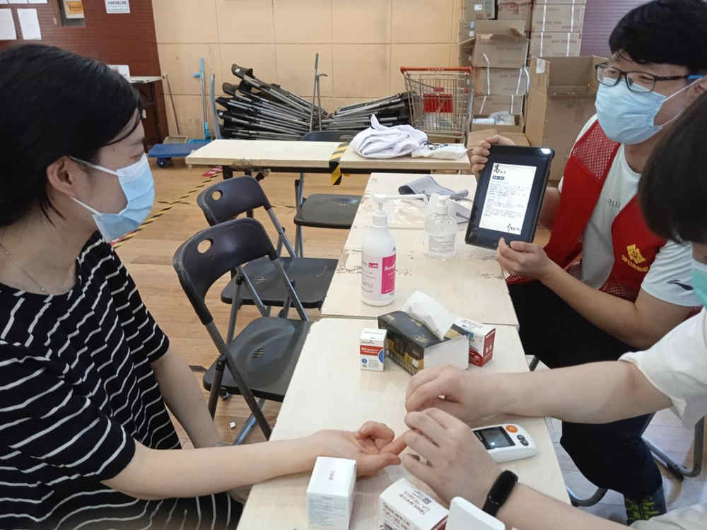 圖為團隊成員為劉奶奶綁血壓儀纏帶