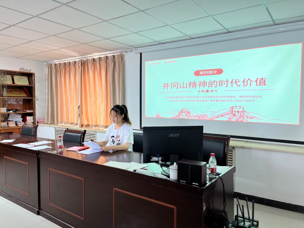 與黨同行井岡山精神宣講團成員段鵬翔結合歷史史實回顧了秋收起義、三灣改編、茅坪安家、朱毛會師、古田會議等一系列發生在井岡山及其周圍的黨史故事,講述了井岡山革命根據地的建立背景及發展建設史。宣講團成員張舒然分享了井岡山精神的內涵:堅定信念、艱苦奮斗,實事求是、敢闖新路,依靠群眾、勇于勝利。并以井岡山精神是否過時為話題,分享了井岡山精神的時代價值。