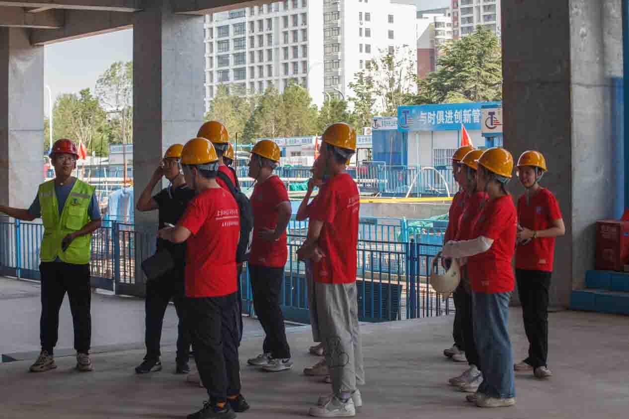 隨后,實踐團一行走進項目建設現場,設身處地地感受建筑工人的生活。酷暑之下,一線建筑工人依然堅守在自己的崗位上,用勤勞和汗水為項目建設添磚加瓦。他們兢兢業業地堅守著自己的工作“陣地”。不怠惰,不退縮,為建設偉大祖國貢獻著自己的寶貴力量。