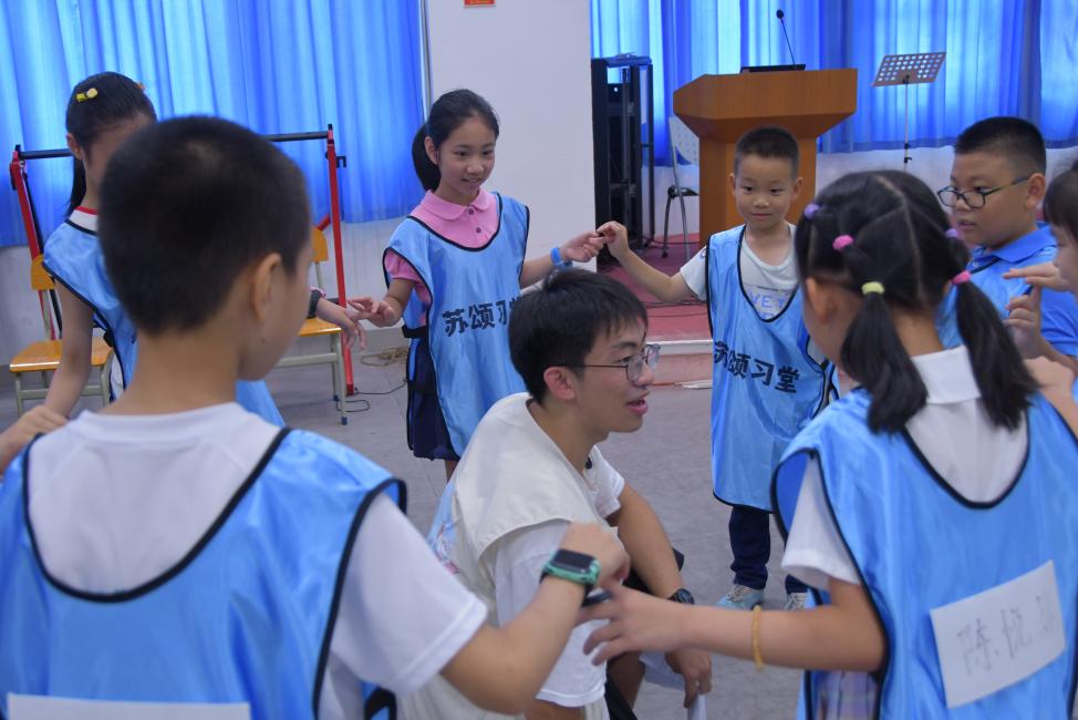 參觀結束后,實踐隊成員帶領小朋友們開展了“與時間賽跑”游戲,讓同學們在快樂的游戲中加深對時間這部分知識的理解,增強時間觀念;接下來進行了“松鼠與大樹”游戲,讓同學們在跑動的過程中加深與大家的聯系,調動大家的積極性;最后大家進行了“不倒森林”游戲,讓小朋友們充分感受到團隊協作的重要性,意識到只有團結一致才能永遠不倒。