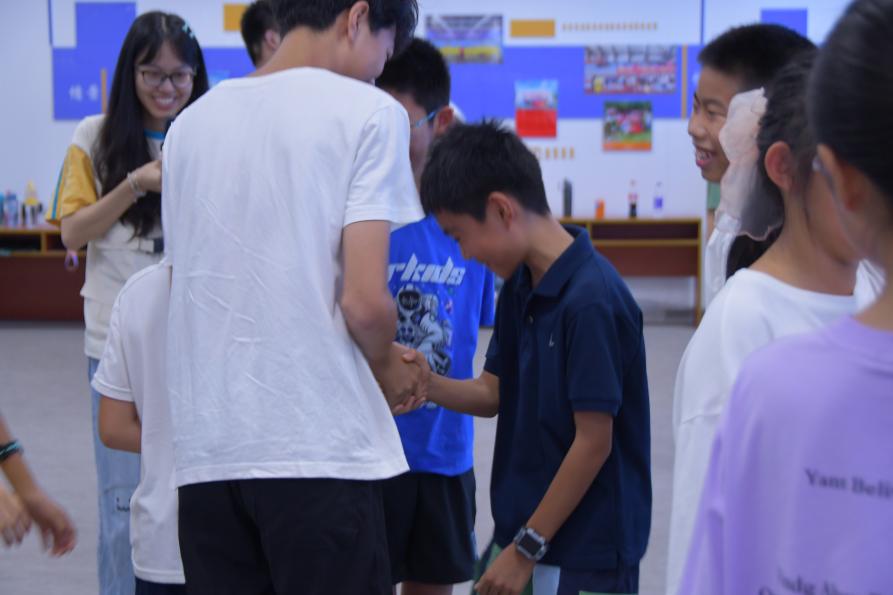 首先,我們進行了“節(jié)奏熱浪”和“見到你很高興”這兩個游戲,初步建立起同學們之間的默契,并分成了三個小組;接著助教引導(dǎo)小組成員們設(shè)計小組名字、口號、展示動作,培養(yǎng)同學們的創(chuàng)新能力和團隊協(xié)作能力。