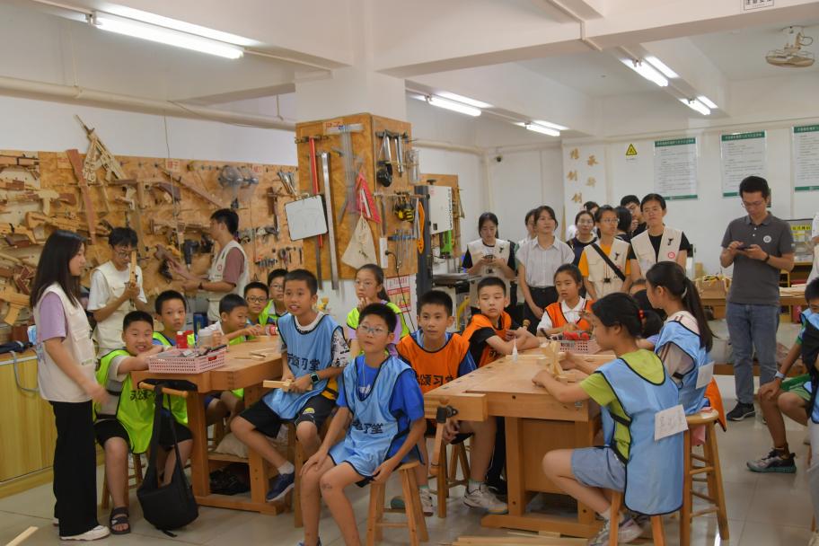 5日下午,我們帶領(lǐng)同學們進入木工坊,學習傳統(tǒng)木工技術(shù),傳承工匠精神。同學們在老師的指導(dǎo)下,制作斗拱,收獲快樂。