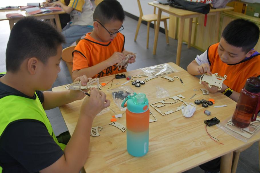 接著,蘇頌習堂實踐隊開展了以“電動小賽車”為主題的steam課程,講解了電動小賽車的科學原理,拓寬了學生的知識面,激發(fā)了學生對科學的興趣。在制作電動小賽車的過程中,學生們互幫互助,培養(yǎng)了他們的團隊協(xié)作和溝通能力;讓學生在一次次嘗試中領會工匠精神,在動手實踐的過程中提高解決問題的能力和創(chuàng)造力。