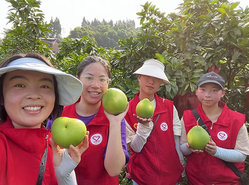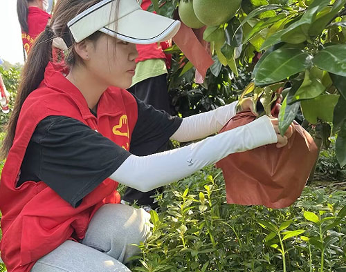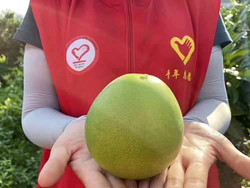 一雙雙巧手包裹著一個個碧綠的蜜柚。