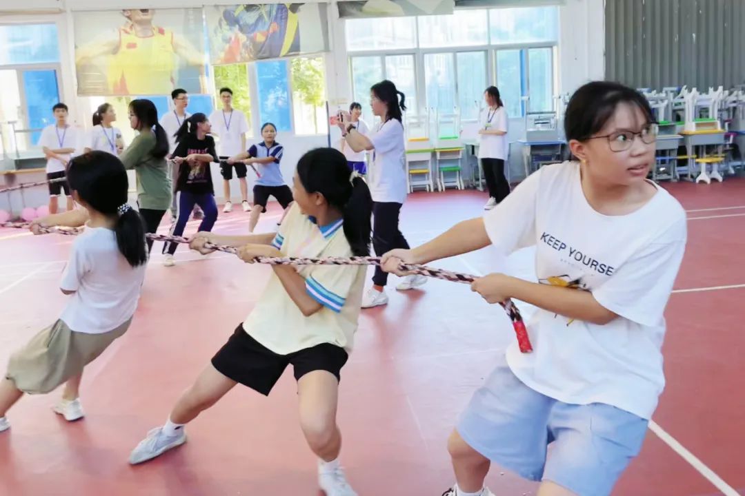 在“拔河答題”項(xiàng)目中,一條繩子一條心。比賽融合了拔河和答題兩個(gè)元素,不僅考驗(yàn)了同學(xué)們的體力和團(tuán)隊(duì)協(xié)作能力,更考驗(yàn)同學(xué)們的智力和知識(shí)儲(chǔ)備;