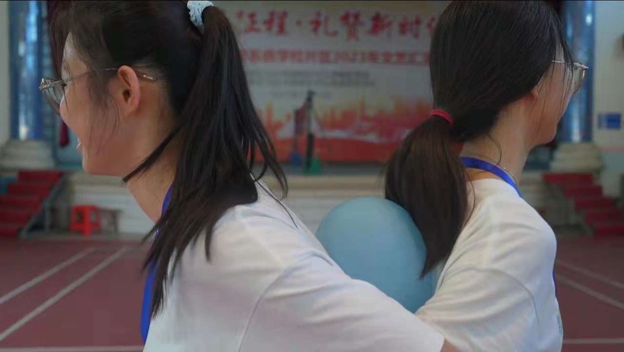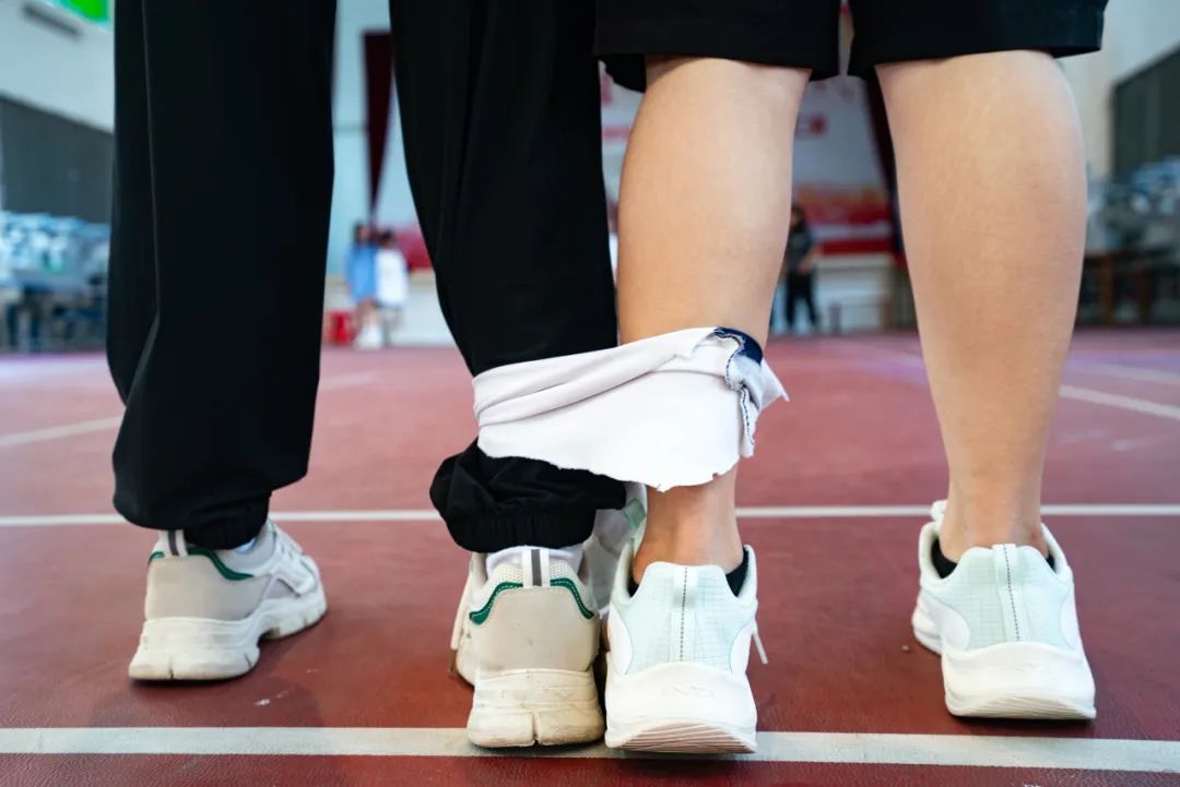 在“兩人三足”項(xiàng)目中,同學(xué)們互相信任、互相支持、互相配合,展現(xiàn)了積極向上的精神面貌和永不放棄的昂揚(yáng)斗志。