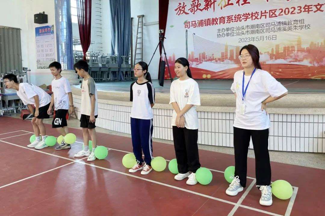 開始前同學(xué)們與支教老師蓄勢(shì)待發(fā)圖為踩氣球比賽