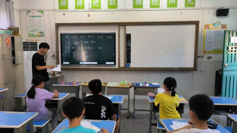 圖為蒲公英支教社會實踐團隊成員為孩子們講解數(shù)學(xué)題。