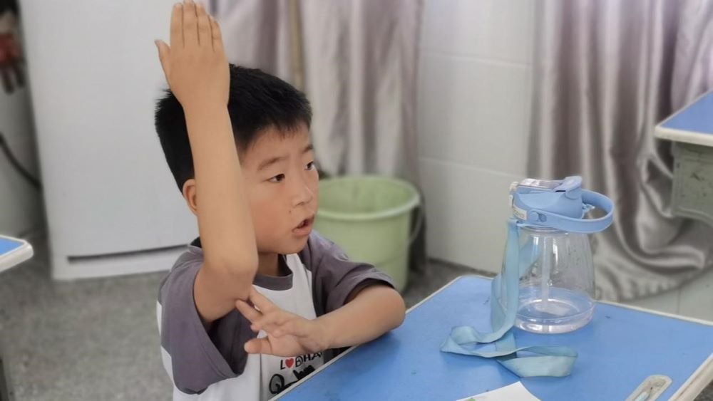 圖為孩子們積極舉手回答問題。